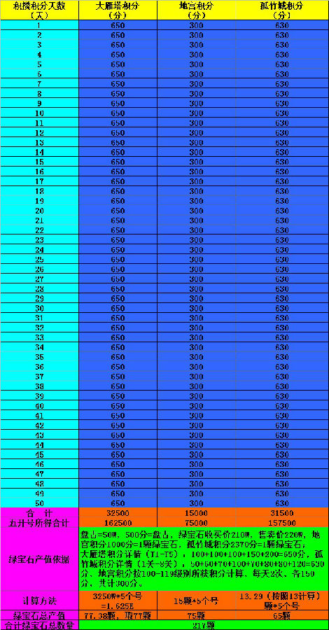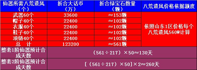 日积月累的仙器合成之正文预算